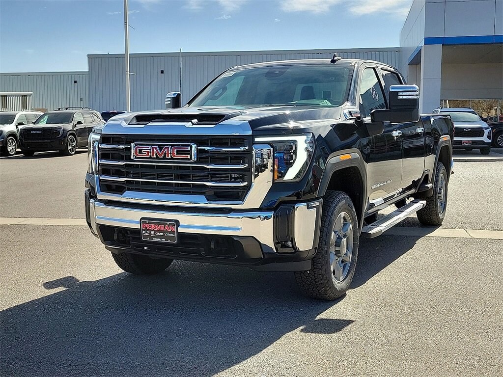 Onyx Black 2026 GMC Sierra 2500HD SLT 4WD 10-Speed Automatic Duramax 6.6L V8 Turbodiesel 10-Speed Automatic, 4WD, Jet Black Leather.